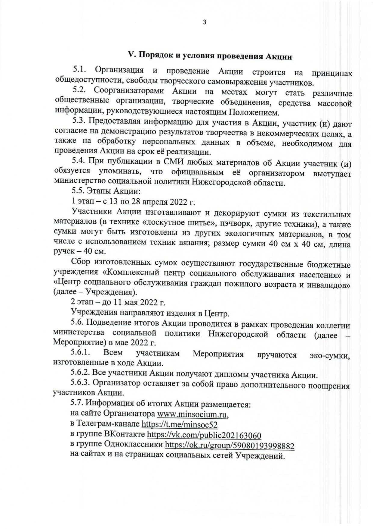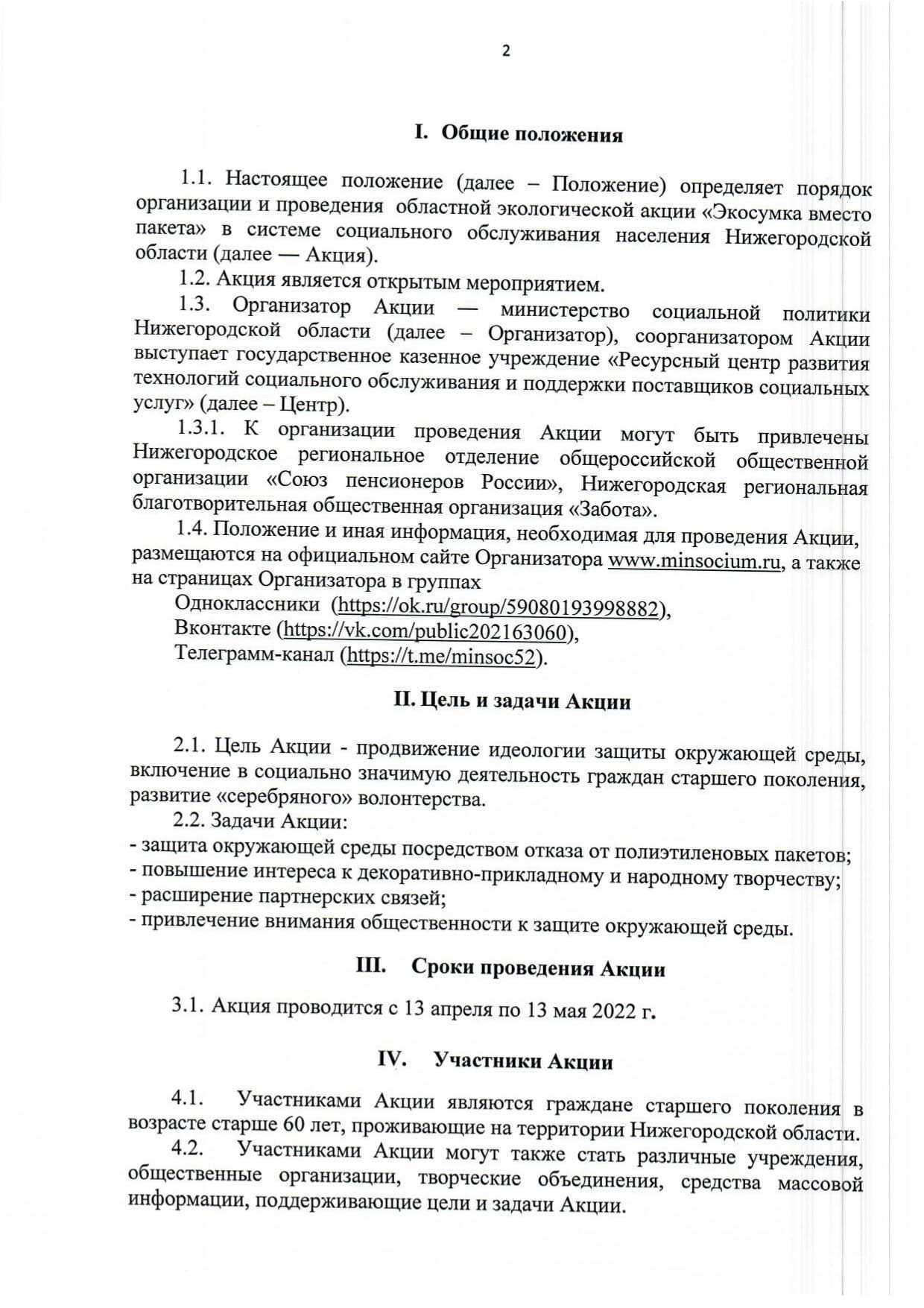 Министерство социальной политики Нижегородской области проводит областную экологическую акцию в системе социального обслуживания населения Нижегородской области «Экосумка вместо пакета» в целях продвижения идеологии защиты окружающей среды, включения в социально значимую деятельность граждан старшего поколения, развития «серебряного» волонтерства.