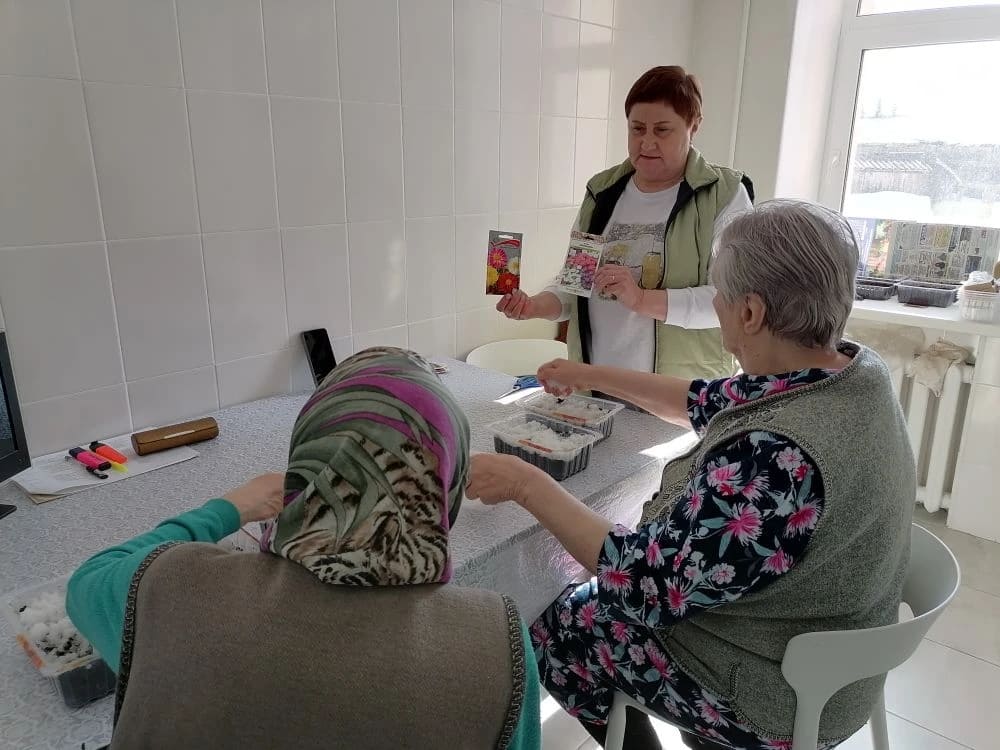 Для жителей отделения "Специализированный жилой дом для граждан пожилого возраста и инвалидов" ГБУ "КЦСОН Краснобаковского муниципального округа" состоялось очередное заседание клуба «Зеленый мир» с темой занятия « Весенние работы в огороде и цветнике». Март – лучший месяц для подготовки сада к приходу весны. Цветоводы и огородники могут не просто томиться в ожидании "полной, кипучей, весенней садоводческой жизни", а заняться неотложными делами, которых найдется немало. В первую очередь заняты рассадой – сеют, пикируют, подкармливают. Первый весенний месяц – время посева на рассаду однолетних цветов. Активные участники клуба «Зеленый мир» продолжают сеять семена бархатцев, астр, однолетних георгинов для цветочных клумб.