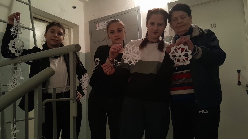 Зиму невозможно представить без снежинок,они придают этому времени года необыкновенное волшебство и очарование. А какой же Новый год без волшебного, праздничного чуда! Ребята из детского дома создали новогоднее чудо своими руками, приняв участие в акции «Снежинка добра», и поделились своим теплом с пожилыми людьми из отделения «Специализированный жилой дом для граждан пожилого возраста и инвалидов». Дети вместе с пожилыми людьми и сотрудниками украсили подъезды в доме снежинками, чтобы каждый из проживающих получил заряд доброты и праздничного настроения.