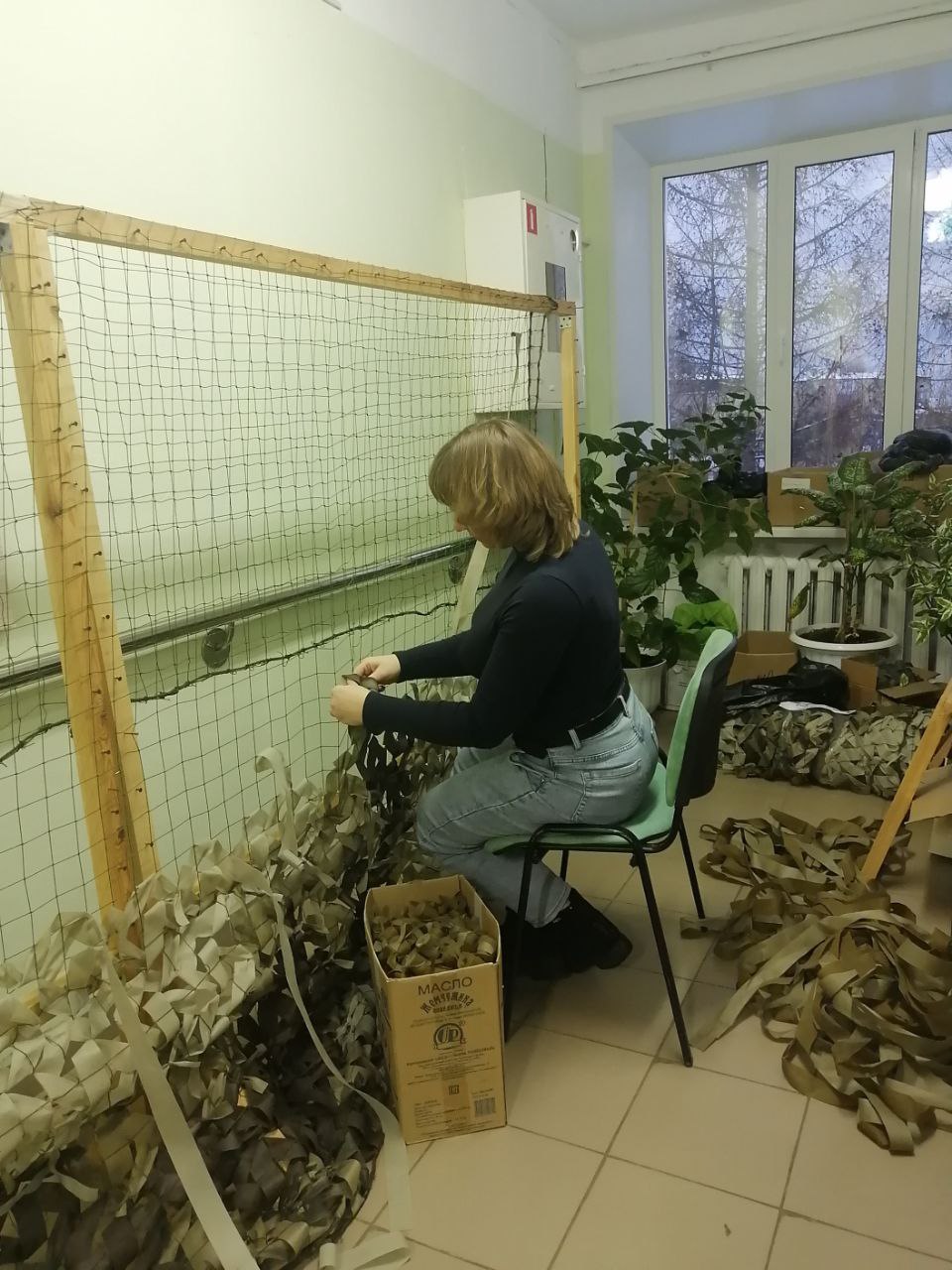 Сотрудники ГБУ "КЦСОН Краснобаковского муниципального округа" продолжают плести маскировочные сети для отправки в зону действия СВО