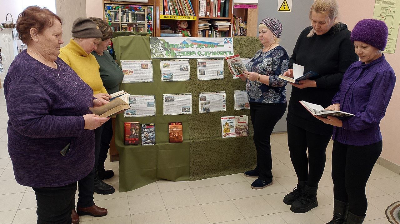 В п. Шеманиха работники ГБУ "КЦСОН Краснобаковского муниципального округа" приняли участие в беседе-выставке "Святое дело Родине служить"