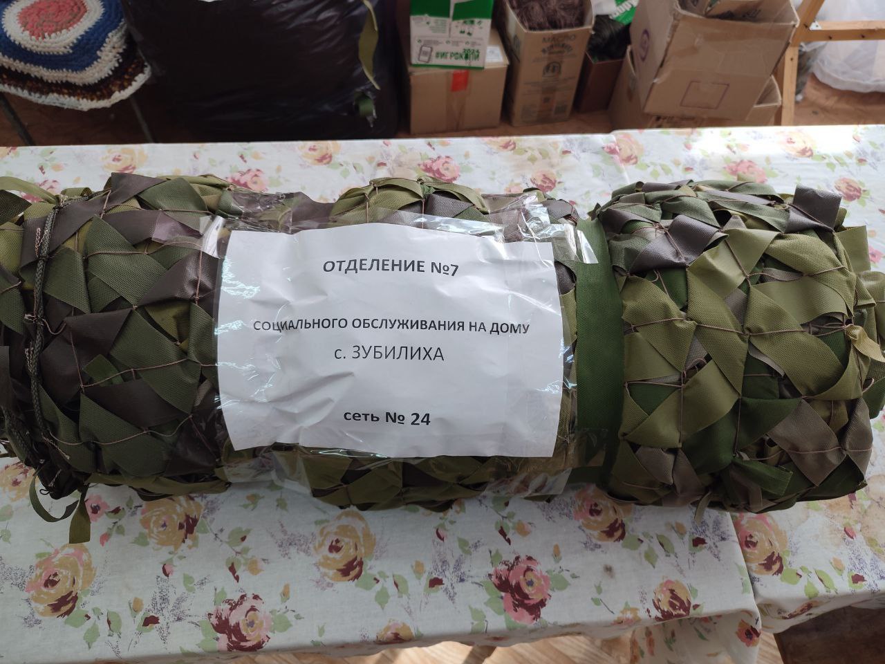 В с. Зубилиха социальные работники ГБУ "КЦСОН Краснобаковского муниципального округа" активно принимают участие в плетении маскировочных сетей для отправки в зону действия СВО