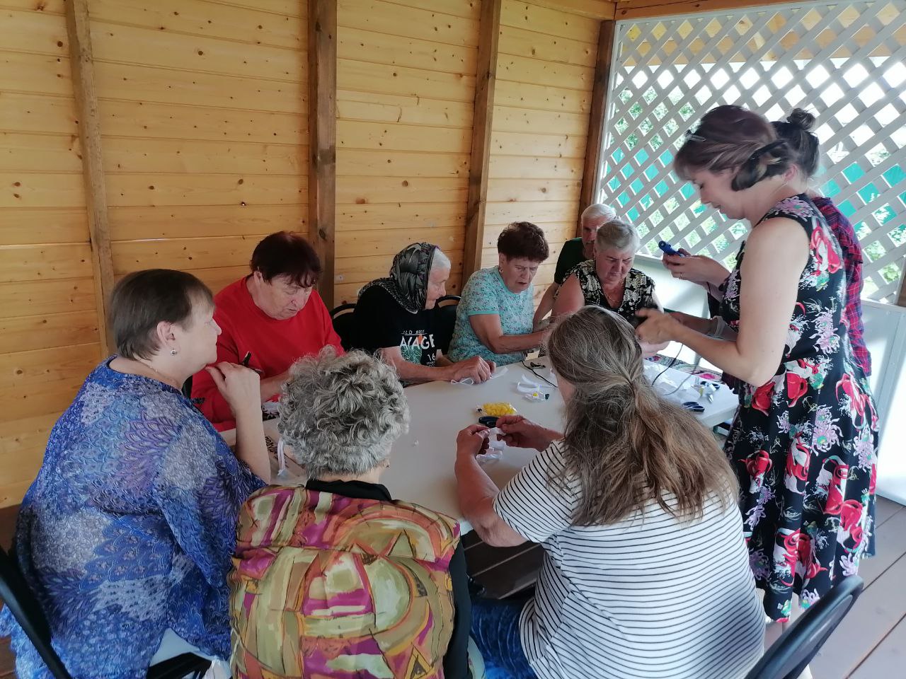 Сотрудники библиотеки им. Н.Г. Тумакова провели для жителей отделения "Специализированный жилой дом для граждан пожилого возраста и инвалидов" ГБУ "КЦСОН Краснобаковского муниципального округа" мастер-класс по изготовлению броши в форме ромашки. Участники научились создавать украшение, которое может стать прекрасным дополнением к гардеробу или оригинальным подарком. Сотрудники библиотеки во время мастер-класса для присутствующих показали все этапы создания украшения, начиная от вырезания деталей и заканчивая сборкой и декорированием.