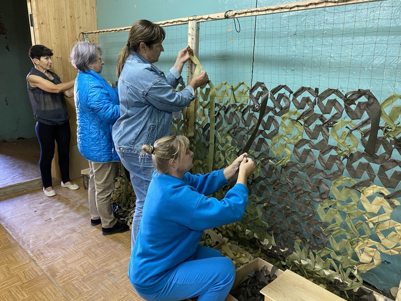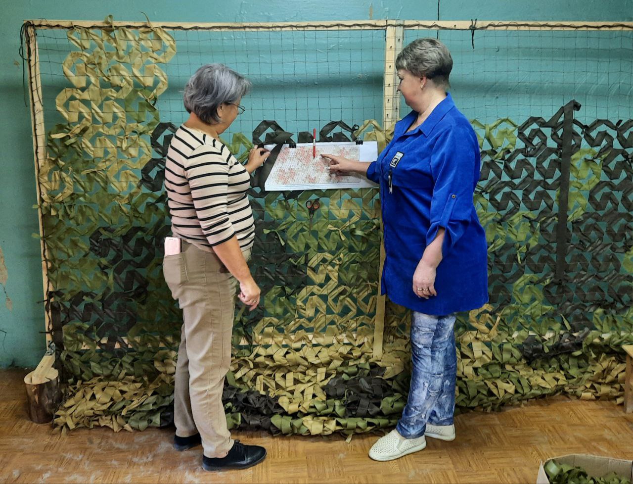 В п. Шеманиха социальные работники ГБУ "КЦСОН Краснобаковского муниципального округа" изготовили еще три маскировочных сети для отправки в зону действия СВО