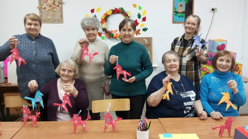В преддверии Нового года обслуживаемые отделения дневного пребывания ГБУ "КЦСОН Краснобаковского муниципального округа" посетили центр детского творчества, где специалист Карасева С.В. провела мастер- класс по изготовлению новогодней игрушки- символ года «Лошадка» в технике оригами. Новогодняя игрушка – это частичка волшебства, в которое так хочется верить под Новый год! Наши обслуживаемые научились делать фигурку из бумаги в технике оригами, познакомились с разными приемами работы с бумагой, сформировали умение следовать инструкции. Такие занятия помогают развивать мелкую моторику, память, внимание. Воспитывают усидчивость, умение оценивать свою работу и вот результат- очаровательная лошадка, прекрасное украшение для новогодней елки.
