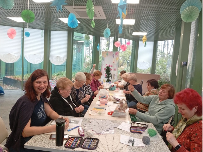 В парке Швейцария в павильоне "Долголетие по-нижегородски" прошёл мастер-класс по вязанию крючком салфеток.