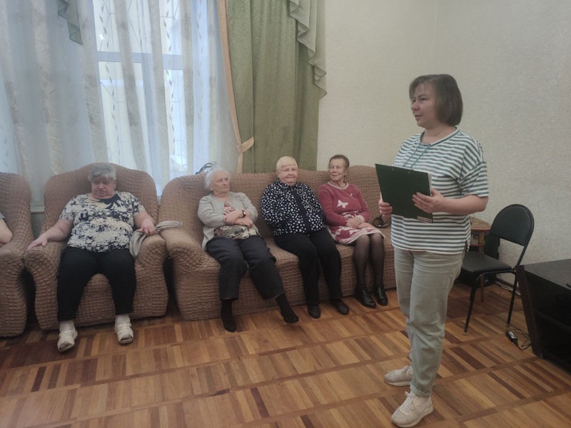 В отделении дневного пребывания студенты ПИМУ провели для отдыхающих пенсионеров беседу о пользе физических упражнений.